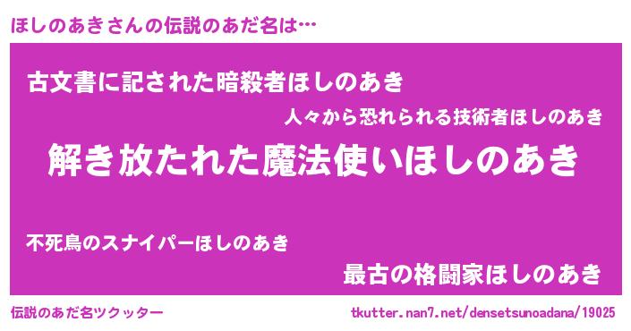 | ヒーロー風カッコイイあだ名 | 『仮面ホシダー』『究極戦士ホシノアキ』 |