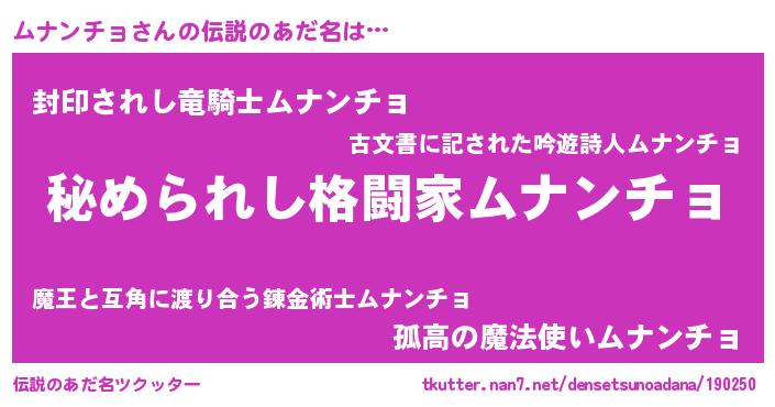 | 肩書あだ名 | 『ムナンチョ船長』『ムナンチョ中佐』 |