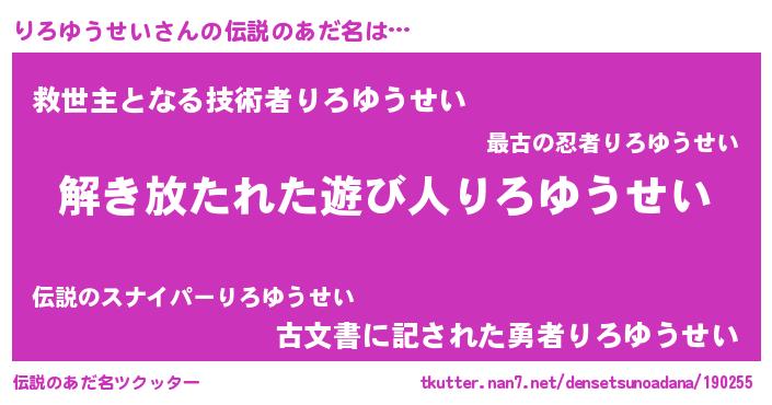 | ヘコむあだ名 | 『りろっぺ』『りろゆうせい(遠い目)』 |