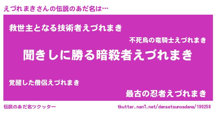 | 意味不明あだ名 | 『永久保存えづれまき』 |