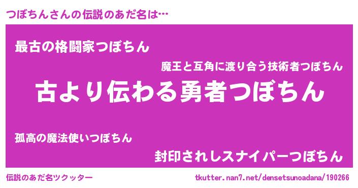 | ヘコむあだ名 | 『つぼちん(苦笑)』『なまこ酢』 |