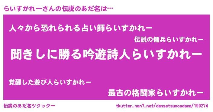 | 意味不明あだ名 | 『永久保存らいすかれー』 |