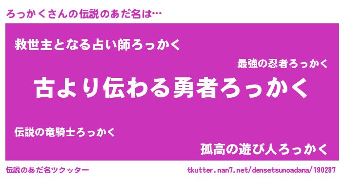| 意味不明あだ名 | 『なめこ科ろっかく属』『自称ろっかく』 |