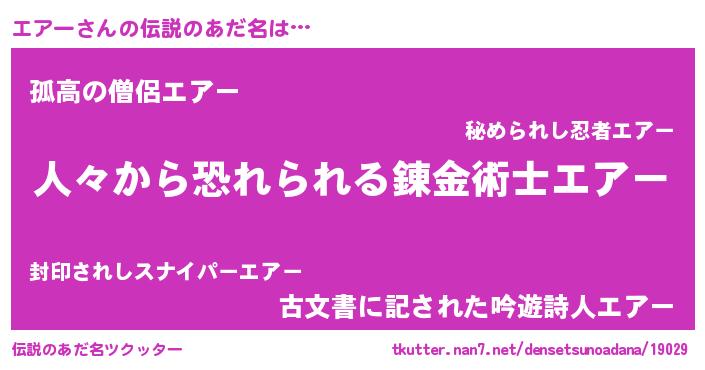 | 男性向けラノベタイトル風あだ名 | 『緋弾のエアー』『魔法科高校のエアー』 |