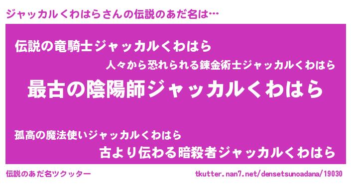 | 欧米人風あだ名 | 『トリンドルジャッカルくわはら』 |
