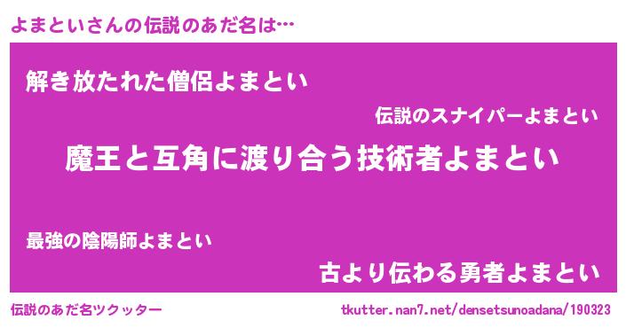 | ヒーロー風カッコイイあだ名 | 『友情の使者よまとい』『魔戒騎士ヨマ』 |