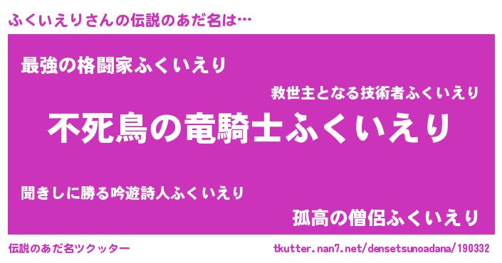 | 男性向けラノベタイトル風あだ名 | 『ふくいえりに滅ぼされるだけの簡単なお仕事です』 |