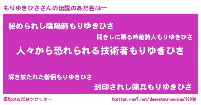 | 肩書あだ名 | 『もりゆきひさ大佐』『もりゆきひさ船長』 |