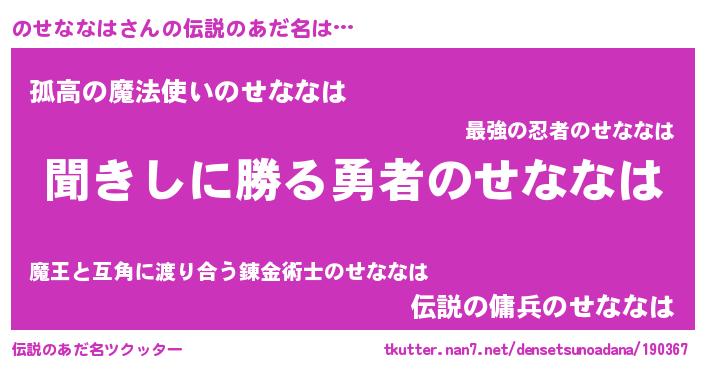 | ヒーロー風カッコイイあだ名 | 『ネオノセナナハ』『仮面ノセダー』 |