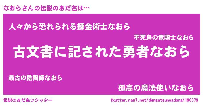 | ファンタジー風あだ名 | 『ナオディッシュ』『ヴァルナオーナ』 |