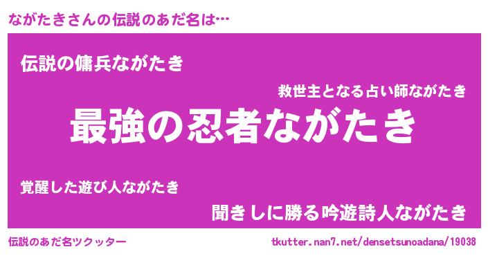 | ヒーロー風カッコイイあだ名 | 『ウルトラながたきマン』『仮面ナガダー』 |