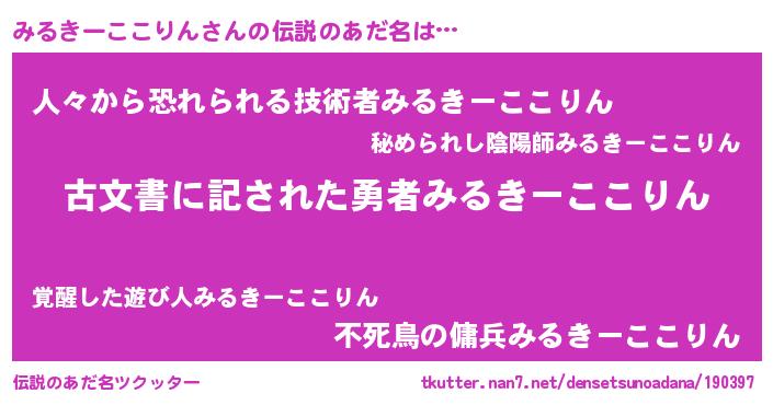 | 意味不明あだ名 | 『住所不定無職みるきーここりん(86歳)』 |