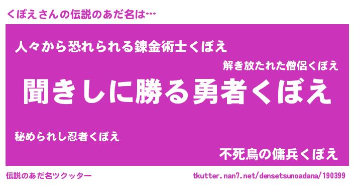 | 胡散臭い通販商品みたいなあだ名 | 『絶対に幸福をもたらす水素水…その名も「くぼえ」』 |