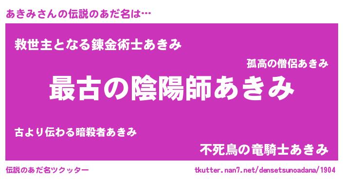 | ヒーロー風カッコイイあだ名 | 『ウルトラあきみマン』『スーパーアキミ』 |