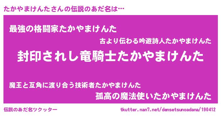 | ヒーロー風カッコイイあだ名 | 『スーパータカヤマケンタ』 |