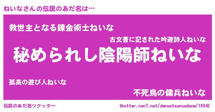 | 意味不明あだ名 | 『ねいなフォーエバー』『ペロリンねいな』 |