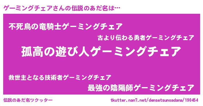 | ヒーロー風カッコイイあだ名 | 『ウルトラ戦士ゲーミングチェア』 |