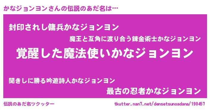 | 意味不明あだ名 | 『とにかく怪しいかなジョンヨン』 |