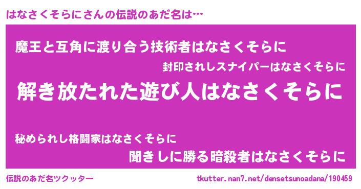 | 意味不明あだ名 | 『とにかく怪しいはなさくそらに』 |