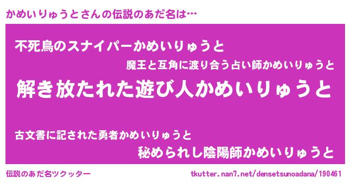 | 意味不明あだ名 | 『とにかく怪しいかめいりゅうと』 |