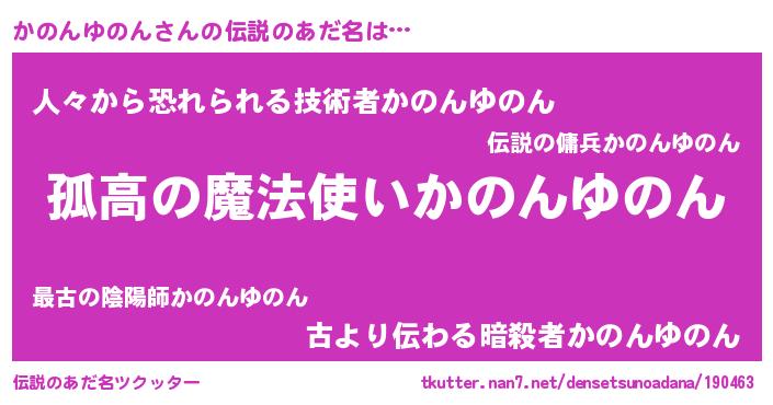 | 男性向けラノベタイトル風あだ名 | 『ダンジョンにかのんゆのんを求めるのは間違っているだろうか』 |