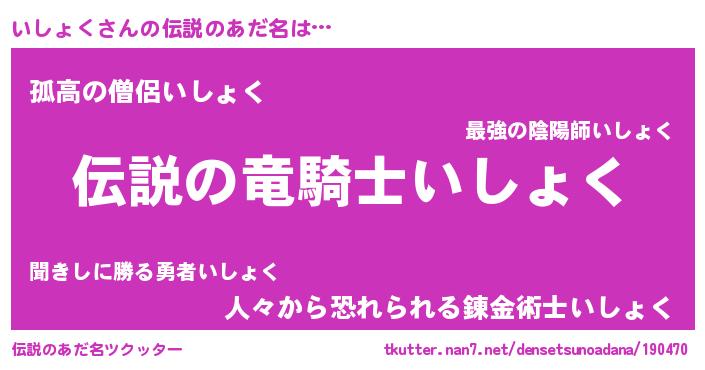 | ヒーロー風カッコイイあだ名 | 『超時空戦士イショク』『幻影騎士イシ』 |