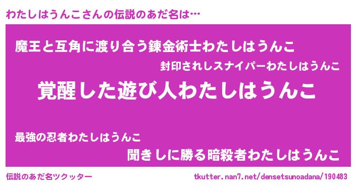 | 意味不明あだ名 | 『住所不定無職わたしはうんこ(89歳)』 |