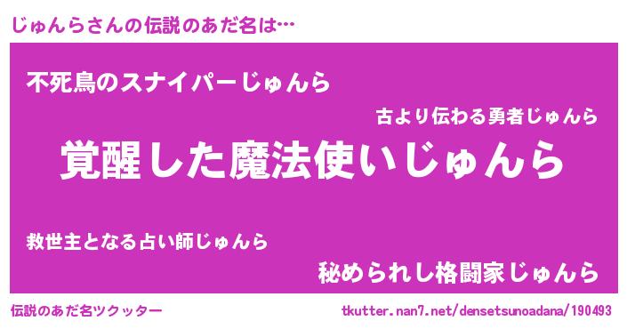 | ヒーロー風カッコイイあだ名 | 『究極戦士ジュンラ』『魔戒騎士ジュ』 |
