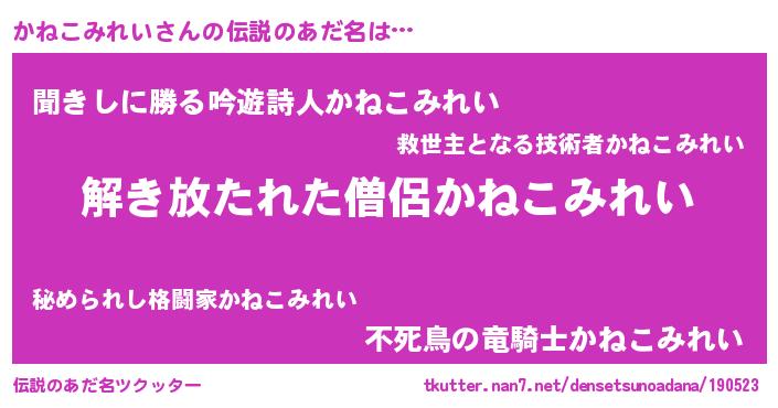 | 欧米人風あだ名 | 『ウサインかねこみれい』 |