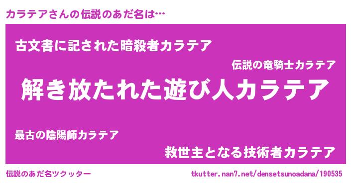 | 胡散臭い通販商品みたいなあだ名 | 『伝統あるペンダント…その名も「カラテア」』 |
