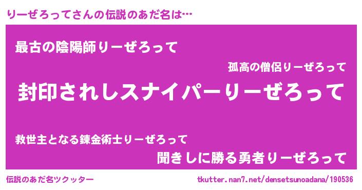 | 胡散臭い通販商品みたいなあだ名 | 『億万長者になれる霊験あらたかなお札…その名も「りーぜろって」』 |