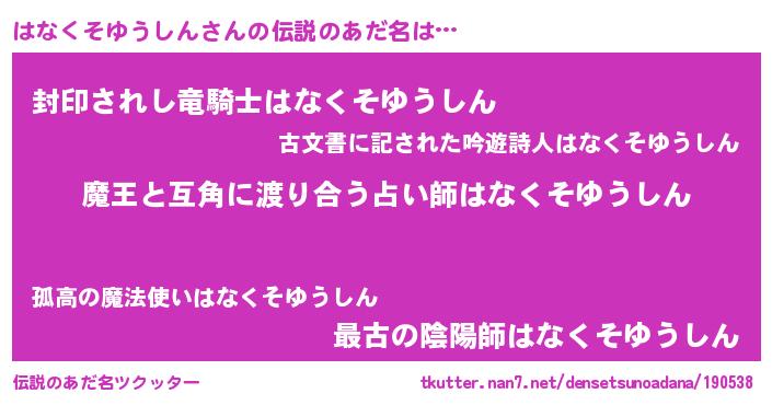 | 意味不明あだ名 | 『自称はなくそゆうしん』 |