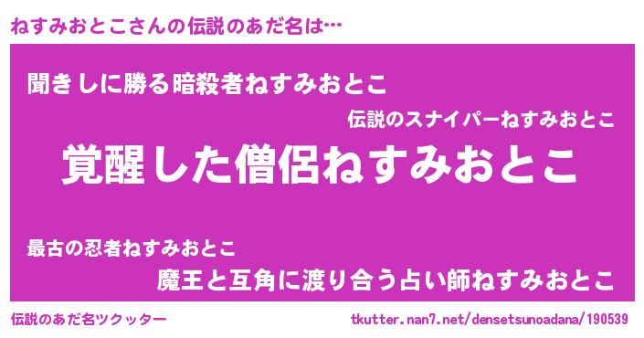 | ヘコむあだ名 | 『ねすっ子』『ねすみおとこ(苦笑)』 |