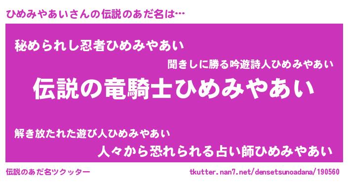 | 胡散臭い通販商品みたいなあだ名 | 『必ず成功するブレスレット…その名も「ひめみやあい」』 |