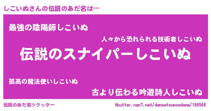 | 胡散臭い通販商品みたいなあだ名 | 『必ず成功する霊験あらたかなお札…その名も「しこいぬ」』 |