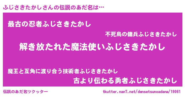 | 意味不明あだ名 | 『自称ふじさきたかし』 |
