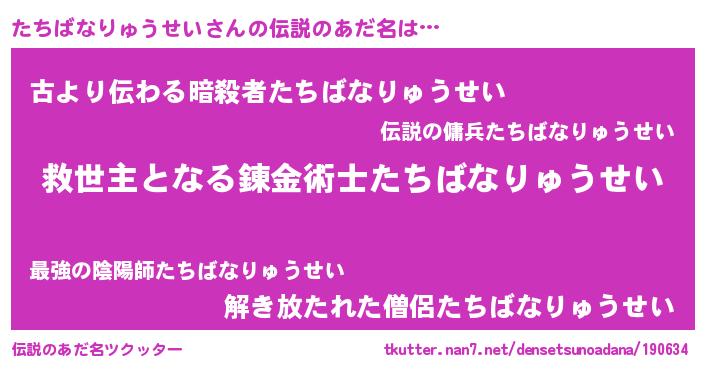| 男性向けラノベタイトル風あだ名 | 『ノーゲーム・ノータチバナリュウセイ』 |