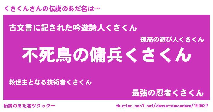 | ヒーロー風カッコイイあだ名 | 『スーパークサクン』『ネオクサクン』 |