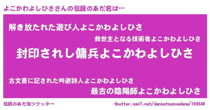 | 胡散臭い通販商品みたいなあだ名 | 『億万長者になれる水晶球…その名も「よこかわよしひさ」』 |