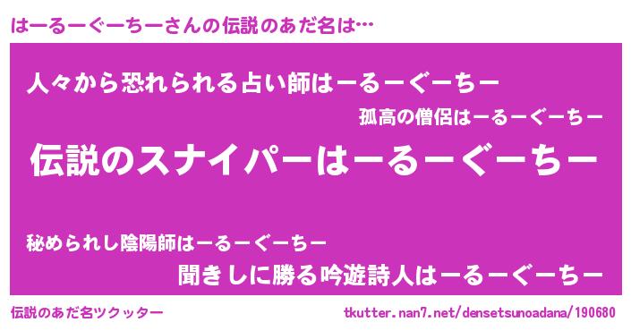 | 意味不明あだ名 | 『住所不定無職はーるーぐーちー(79歳)』 |