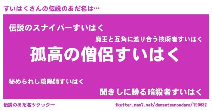 | ヒーロー風カッコイイあだ名 | 『黄金騎士スイ』『スーパースイハク』 |