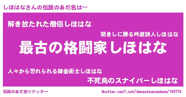 | 意味不明あだ名 | 『住所不定無職しほはな(9歳)』 |