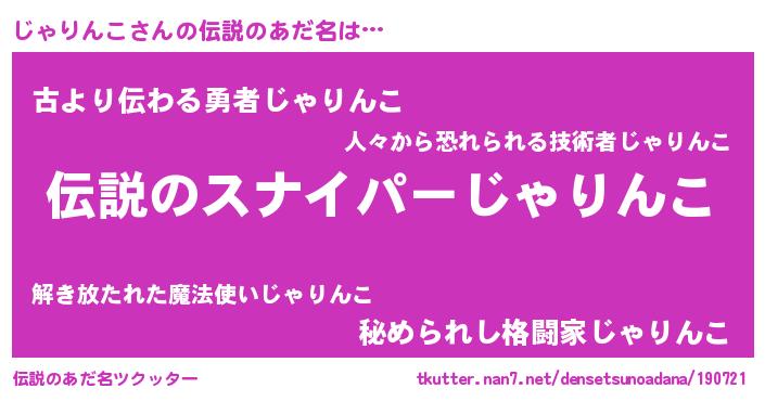 | 胡散臭い通販商品みたいなあだ名 | 『必ず成功する霊験あらたかなお札…その名も「じゃりんこ」』 |