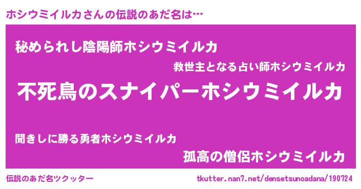 | 胡散臭い通販商品みたいなあだ名 | 『モテモテ間違いなし霊験あらたかなお札…その名も「ホシウミイルカ」』 |