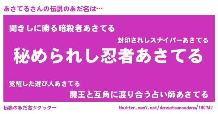 | ヒーロー風カッコイイあだ名 | 『ウルトラあさてるマン』『仮面アサダー』 |