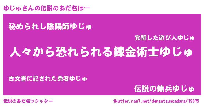 | 男性向けラノベタイトル風あだ名 | 『おまえをオタクにしてやるから、俺をゆじゅにしてくれ! 』 |