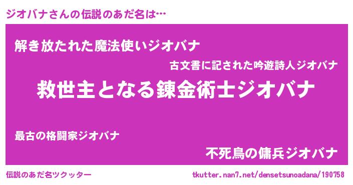 | 欧米人風あだ名 | 『アンジェラ・ジオバナ』 |