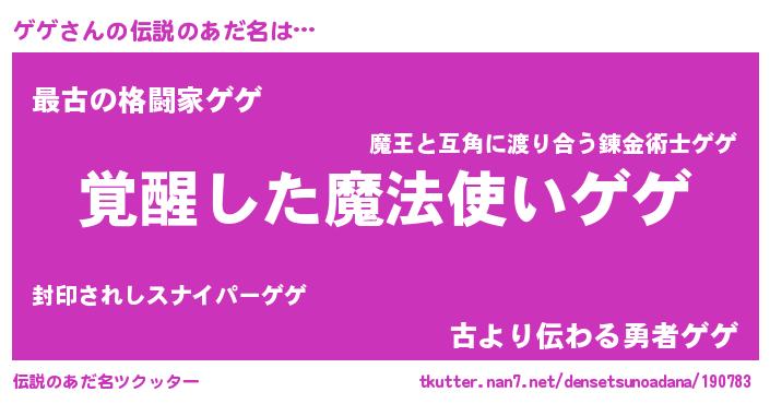 | ヒーロー風カッコイイあだ名 | 『炎刃騎士ゲゲ』『ウルトラゲゲマン』 |