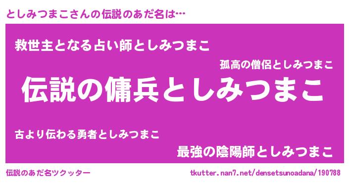 | 意味不明あだ名 | 『自称としみつまこ』 |