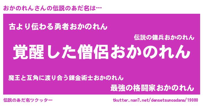 | 女子向けラノベタイトル風あだ名 | 『おかのれん様がみてる』 |